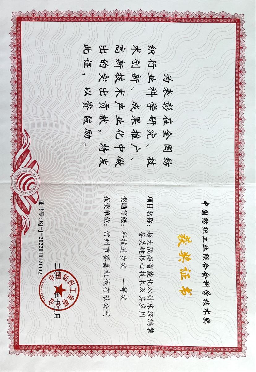 中國紡織工業聯合會科技進步一等獎